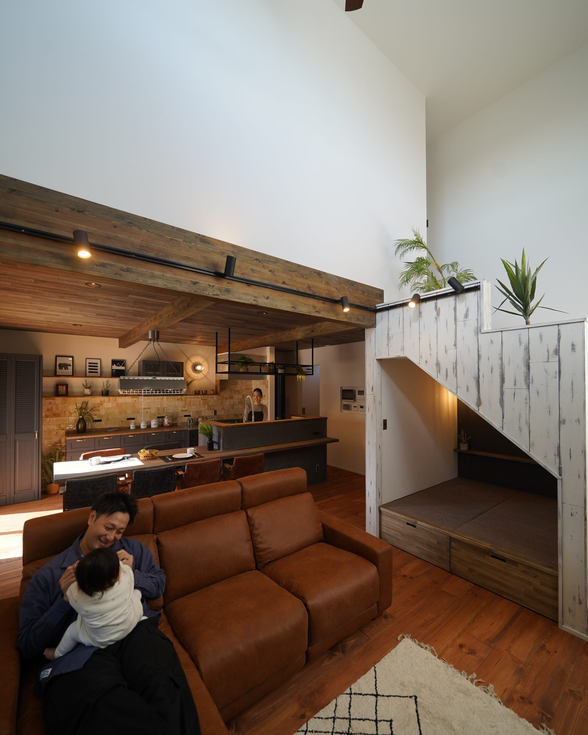 ヴィンテージスタイルでインナーガレージの二階建てのお家が完成いたします。
