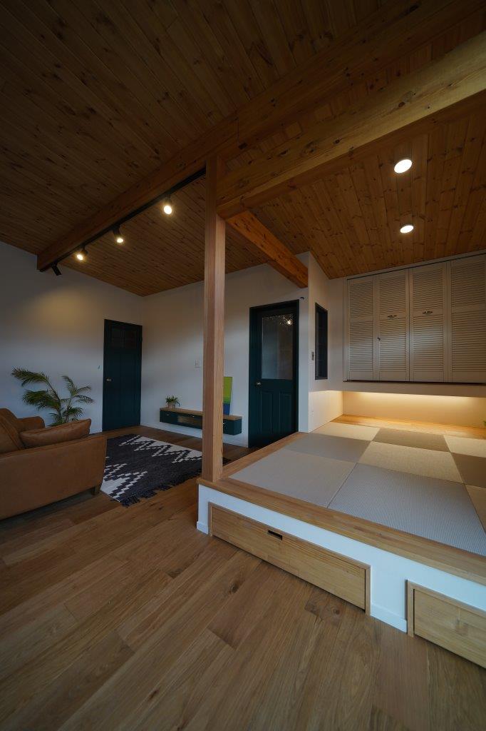 勾配天井を採用した広々としたLDKとナチュラルながらかっこいい空間となりました。